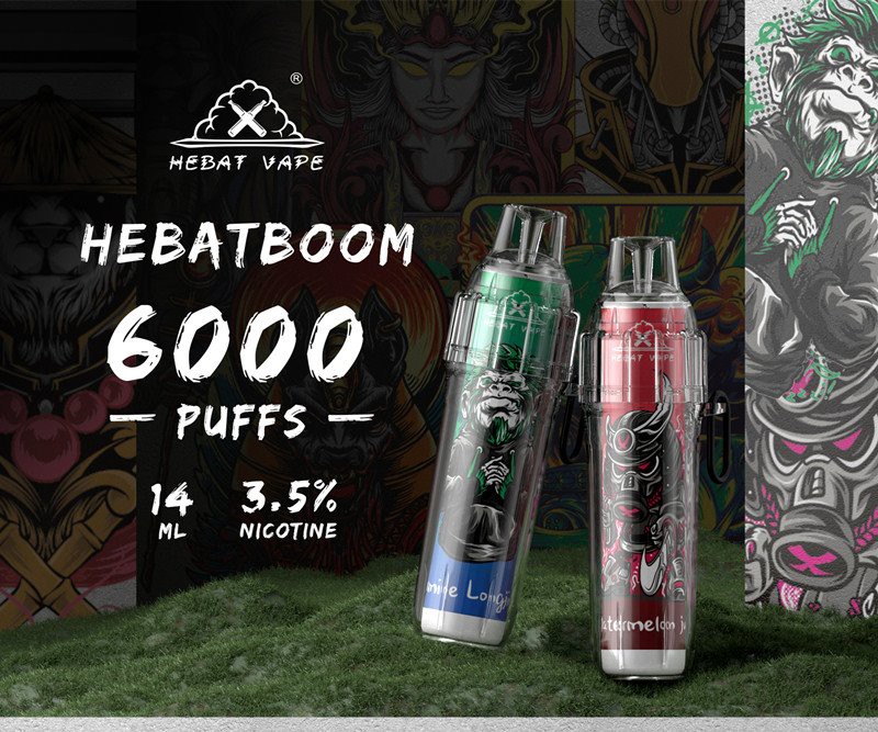 Mae Hebat Boom 6000 yn sigaréts electronig tafladwy ac y gellir eu hailwefru. Cynnyrch cost-effeithiol iawn hyd at 10 blas: Tieguanyin, cola Iâ, rhew grawnwin, Lychee, Llus, ffrwythau Passion, Mintys, Mefus, Iâ gwyrddlas, Diod ynni.